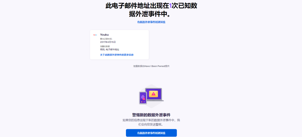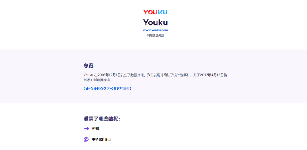 Firefox Monitor显示Youku是在2016年12月1日发生了数据外泄的事件,我的密码和电子邮件地址都被泄露了。