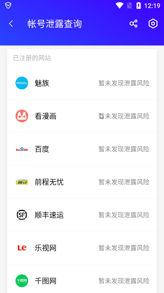 接着就可以看到我们的手机号注册了哪些网站,有没有泄露风险。
